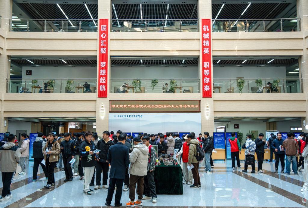 2025年10月26日,我校机械类2026届毕业生专场双选会在图书馆二楼大厅举行。此次双选会由学生处、机械工程学院和张家口市机械工程学会联合主办,吸引了30多家用人单位参会,提供近三百多个就业岗位,需求涵盖机械、电气、计算机等多个专业领域,与我校人才培养方向高度适配。