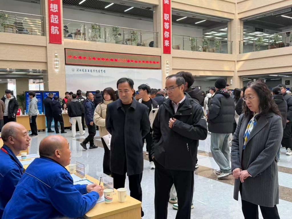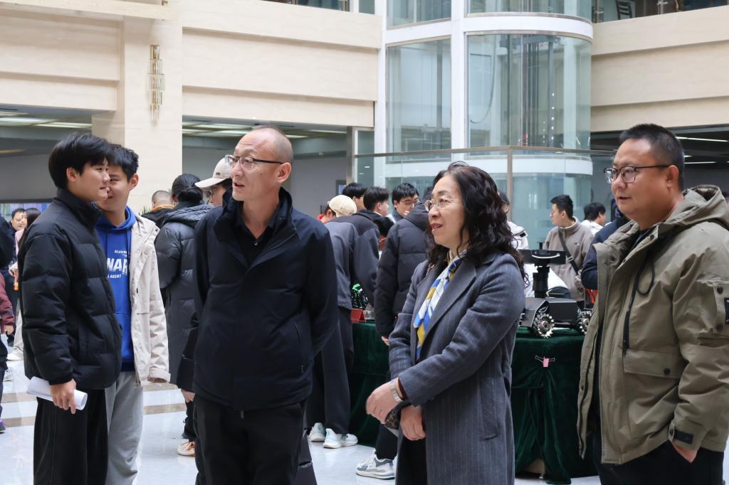 校长王建民和张家口市机械工程学会2025年学术年会参会嘉宾及学生处、机械工程学院及其他院系领导来到双选会现场,与河北宣工机械发展有限责任公司、河北宣化钢铁机械制造有限责任公司、河北和歌山生物科技有限公司等用人单位就产教融合、人才培养、创新实践等进行了深入交流。领导们还参观了机械工程学院学生竞赛获奖作品和专业类兴趣小组创新作品展示,对学生的创新成果给予了高度评价。